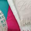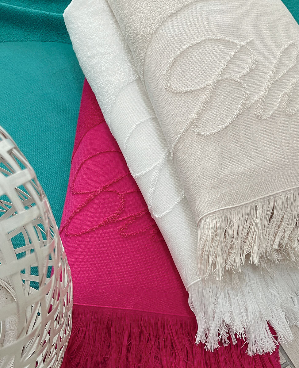 Telo mare tinta unita in spugna riccio con motivo ad onde cesellato e logo Blumarine in jacquard.