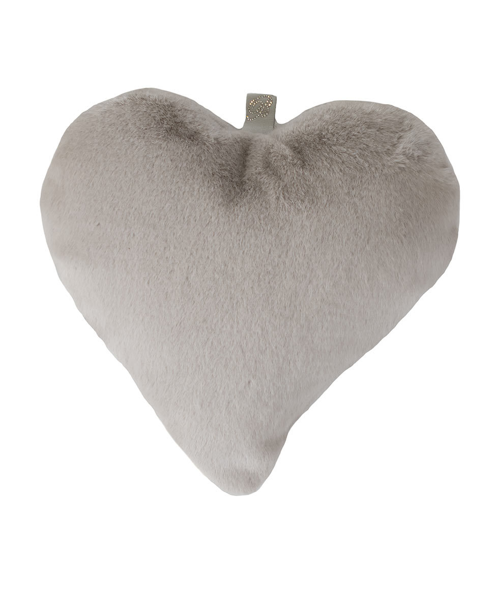 Cuscino decorativo piccolo a forma di cuore in pelliccia sintetica e logo Blumarine in cristalli su nastrino.