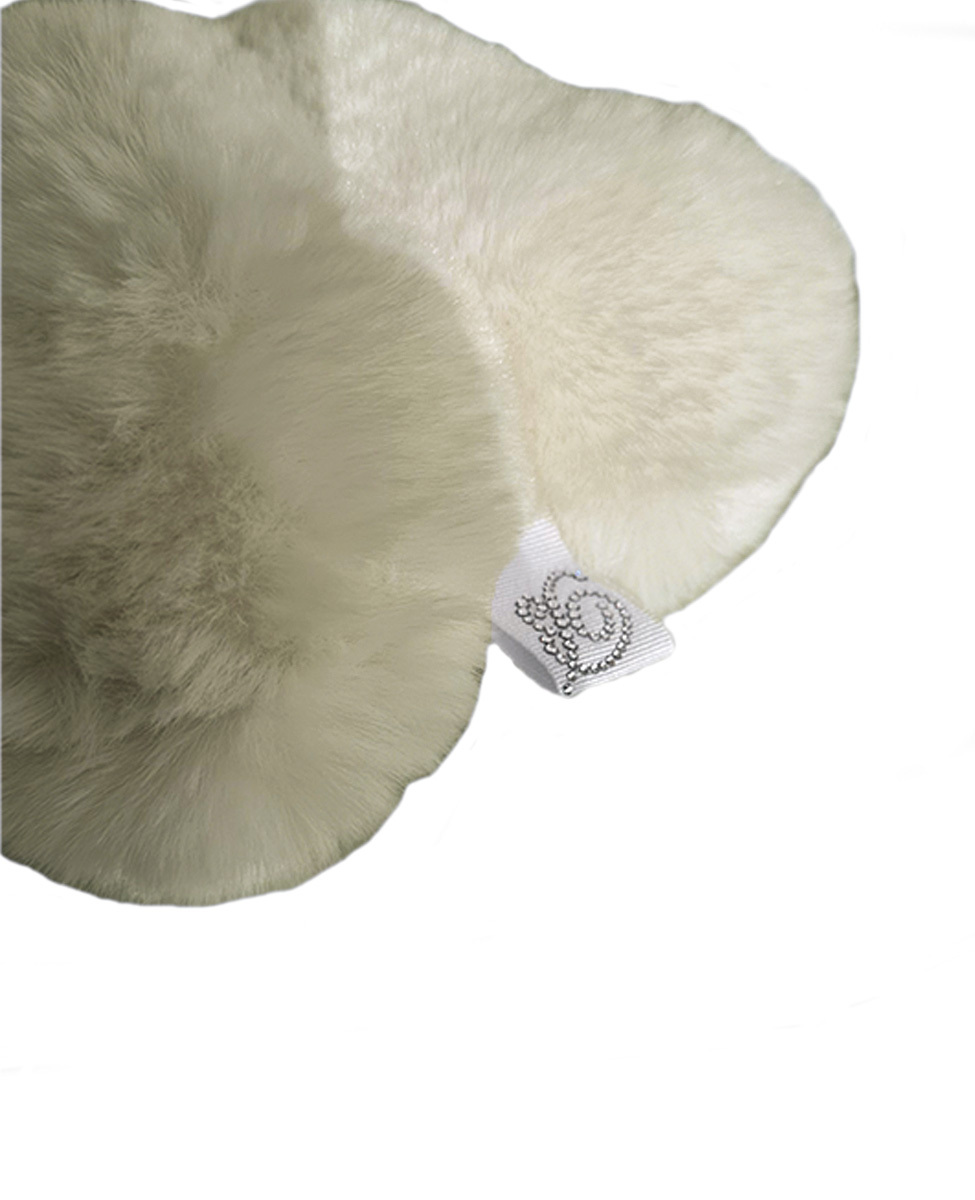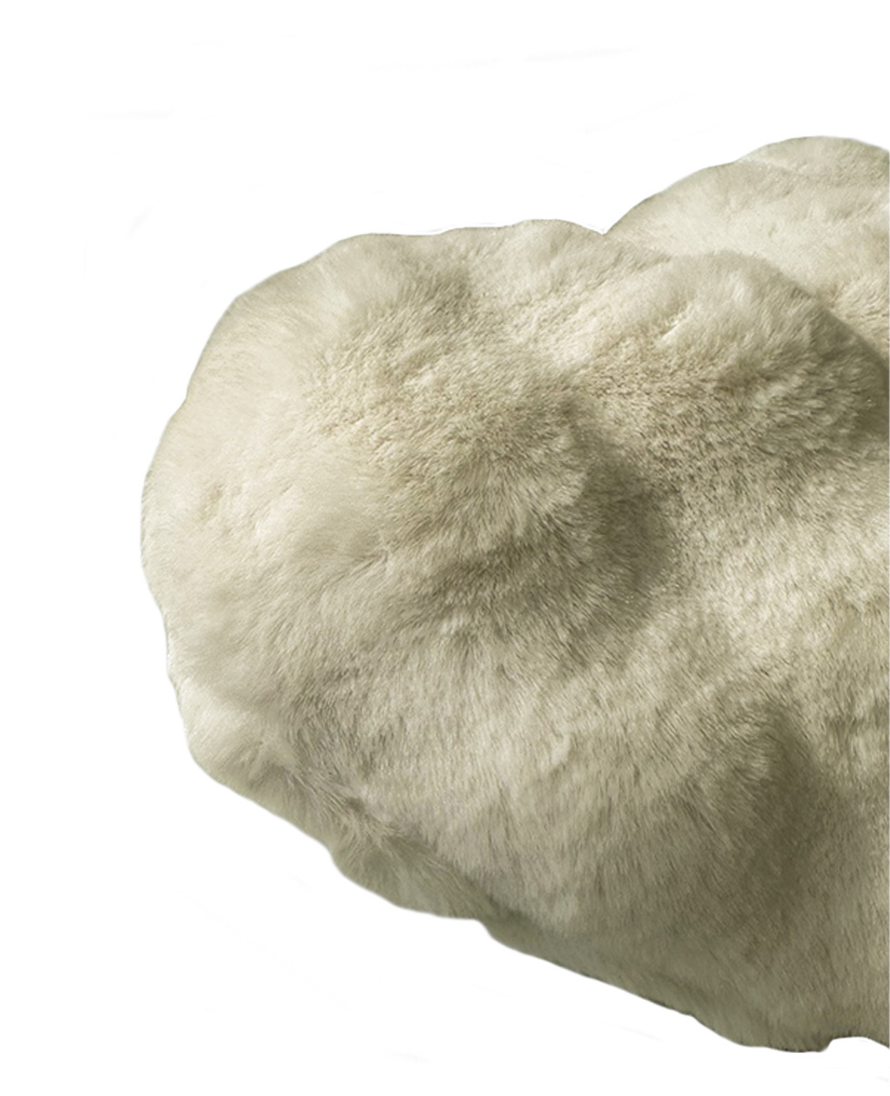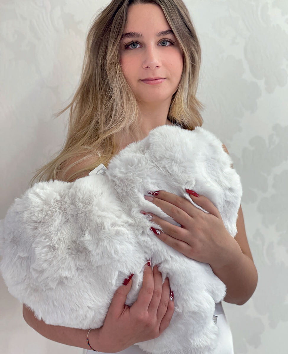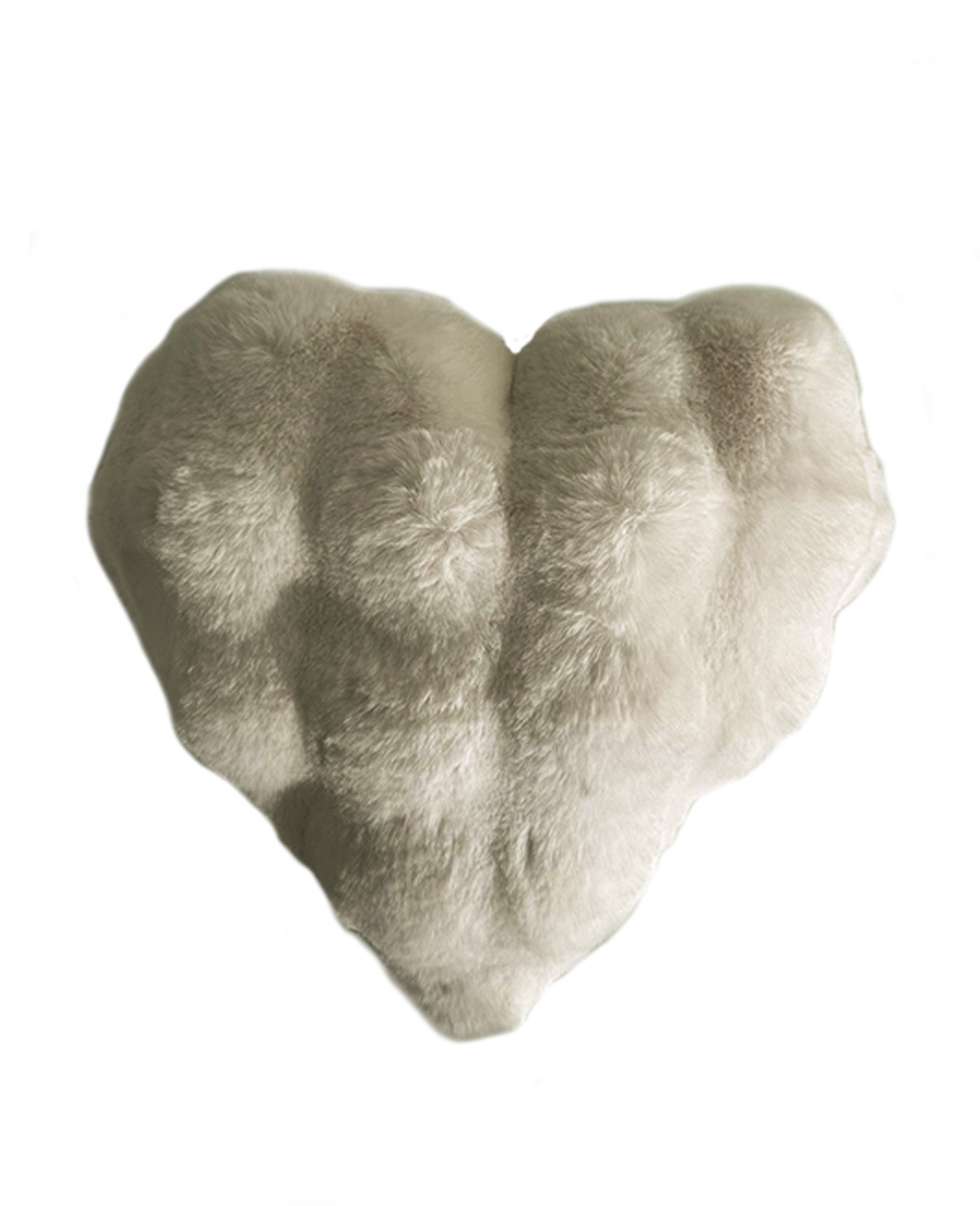Cuscino grande a cuore in ecopelliccia con logo Blumarine in cristalli su nastro gros grain.