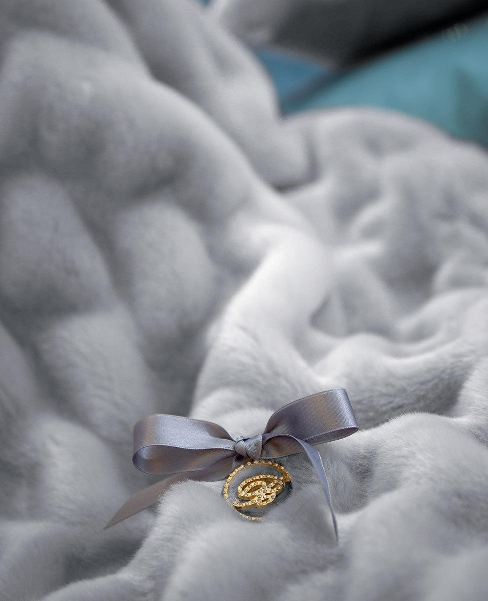 Plaid in pelliccia sintetica con pendente Blumarine in cristalli.