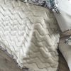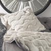 Plaid in eco-pelliccia con motivo a rilievo, rifinito con un doppio bordo tinta unita, rimesso in allungatura, in un tessuto mano pesca. Logo Blumarine in cristalli Swarovski applicato sul bordo. Così glamour!