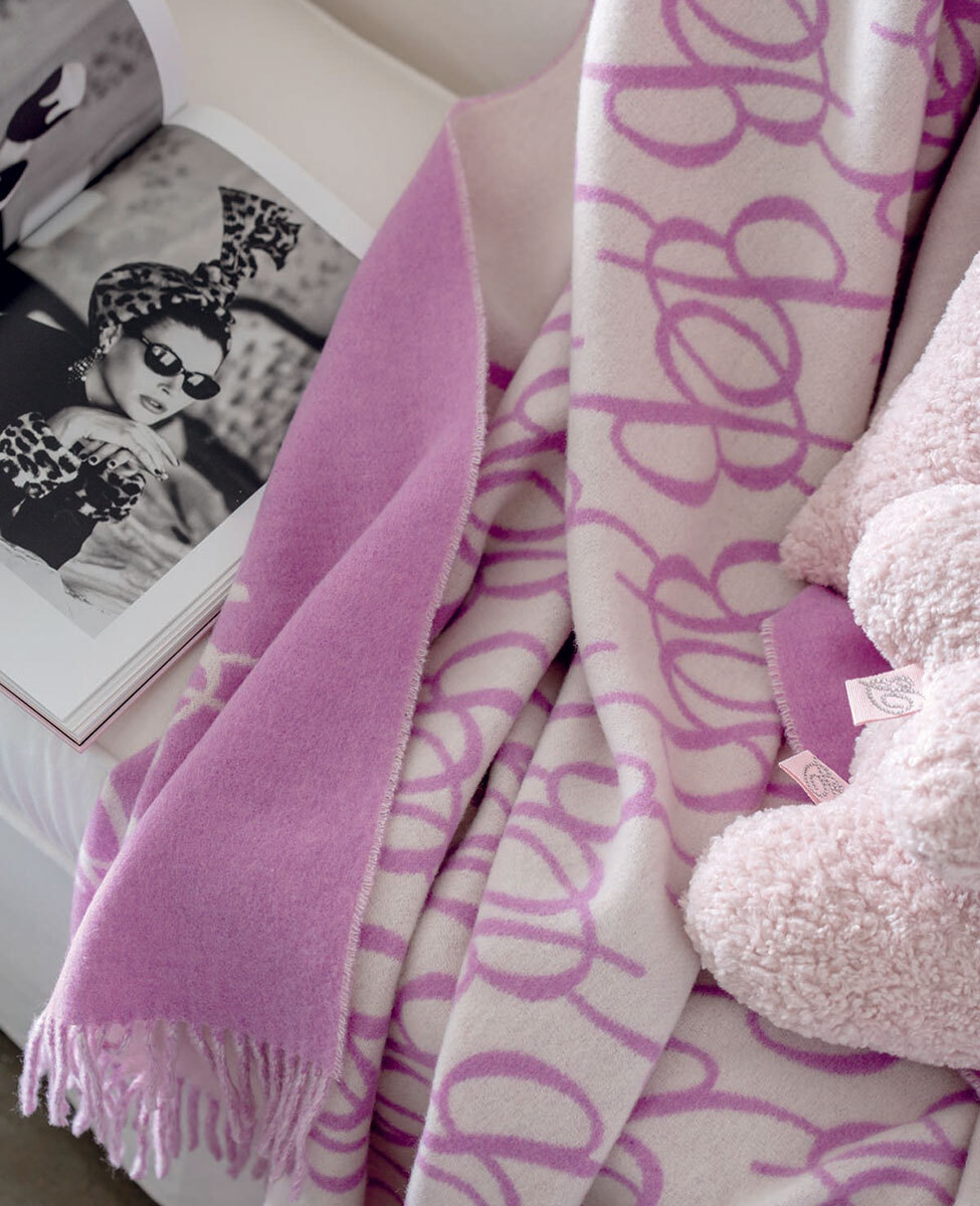 Plaid in lana jacquard con disegno piazzato, tinto in filo.