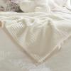 Il plaid è rifinito con un doppio bordo tinta unita, rimesso in allungatura, in un tessuto mano pesca.