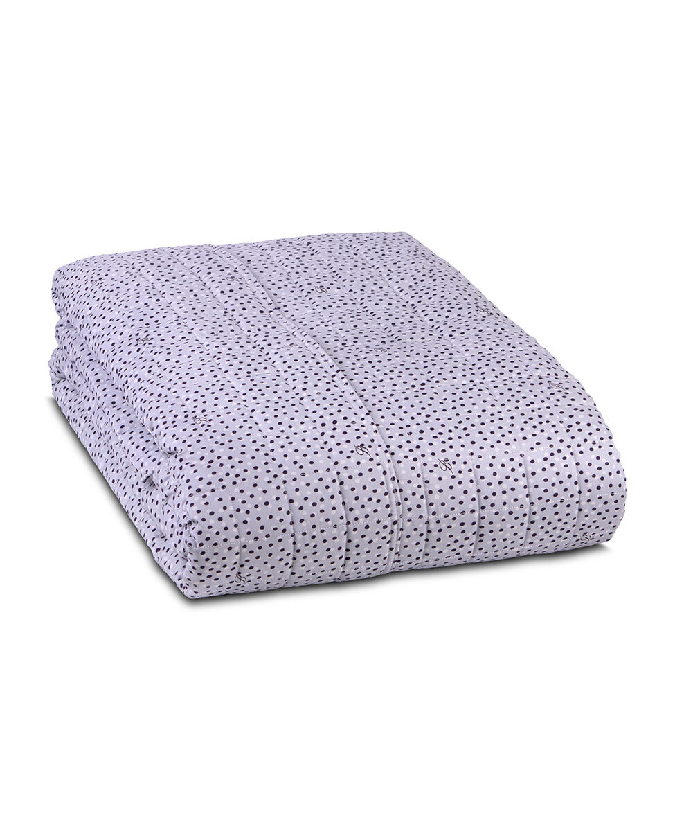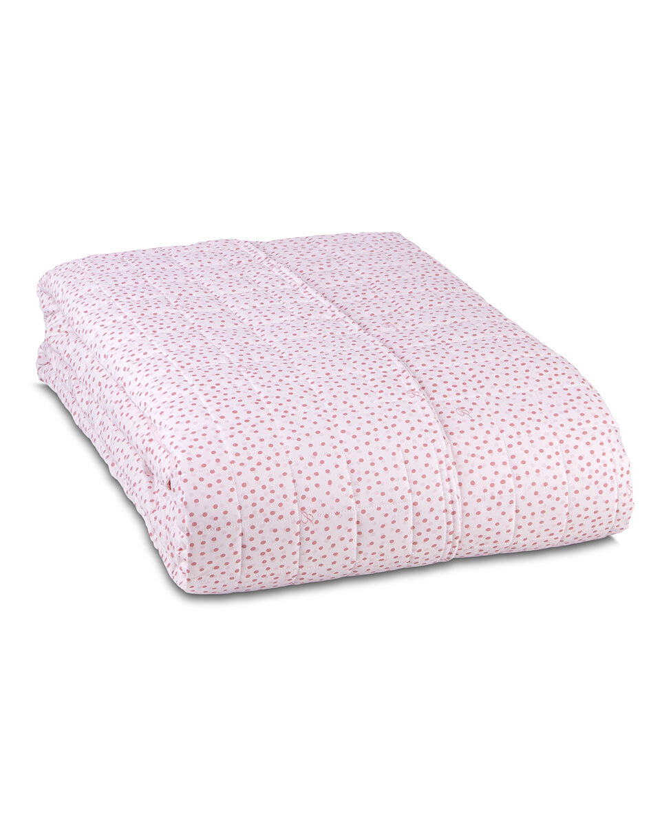 Copriletto matrimoniale trapuntato con stampa all over a pois e logo Blumarine nella trama.