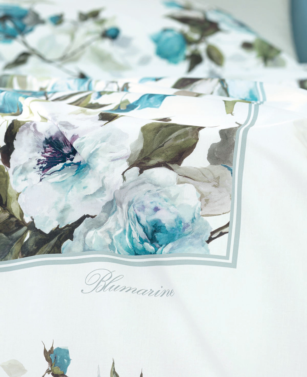 Copriletto matrimoniale con stampa piazzata all over e logo Blumarine stampato.