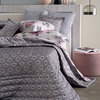 Copriletto matrimoniale trapuntato con moderno disegno jacquard tinto in filo e logo Blumarine in cristalli.