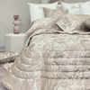Copriletto matrimoniale trapuntato in jacquard con logo Blumarine nella trama del tessuto e angolo stondato in caduta.