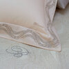 Copriletto matrimoniale liscio non trapuntato e non foderato, con sensuale motivo jacquard a onde e logo Blumarine in cristalli.