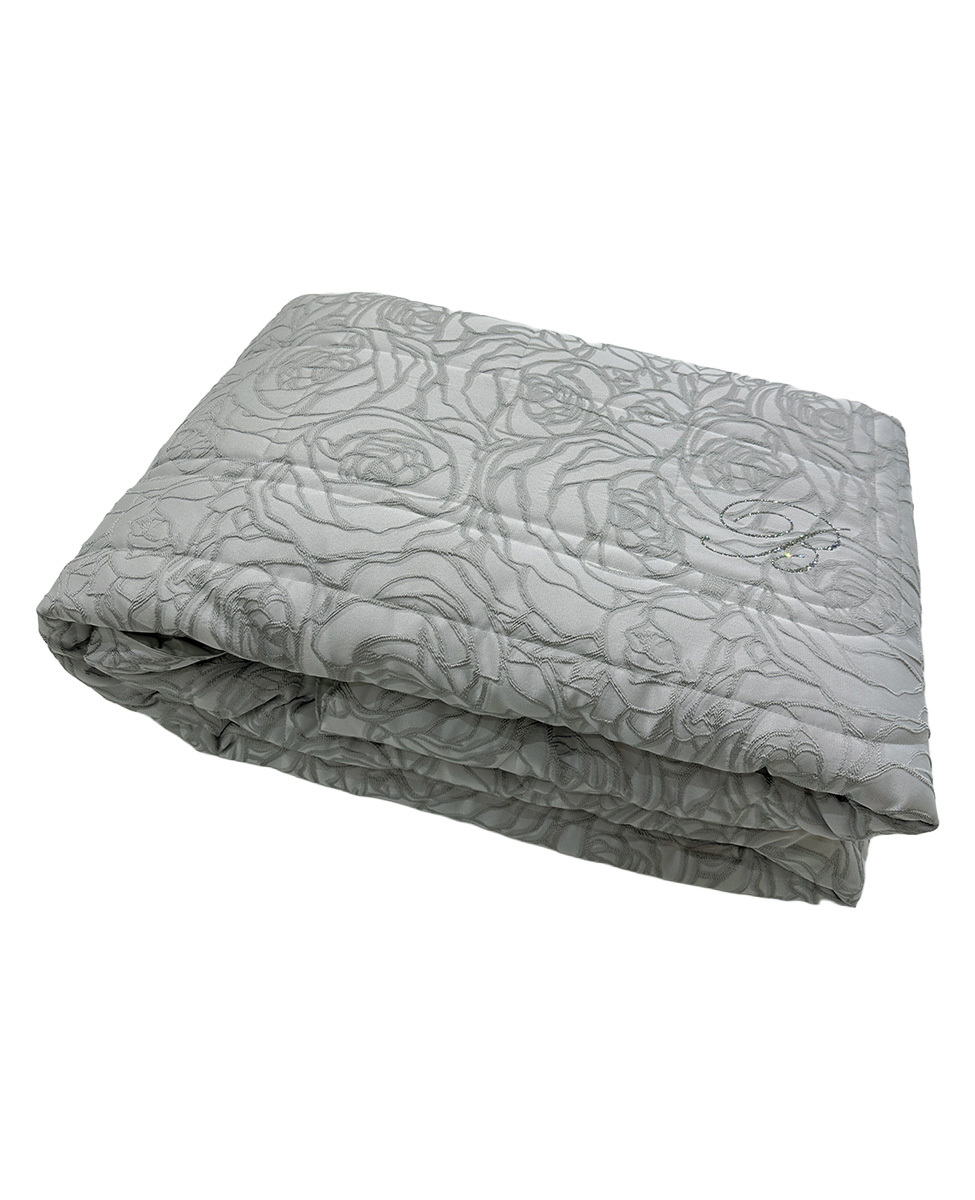 Copriletto matrimoniale liscio, non trapuntato, in jacquard con logo Blumarine in cristalli e angolo stondato in caduta.