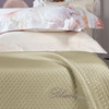 Copriletto matrimoniale liscio non trapuntato in piqué jacquard con logo Blumarine in cristalli e angolo stondato in caduta.
