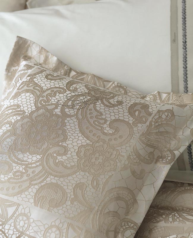 Copriletto matrimoniale trapuntato in jacquard con monogramma Blumarine in cristalli Swarovski.