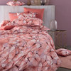 Completo copripiumino matrimoniale con stampa all over su federe e sopra sacca copripiumino, lenzuolo sotto in raso di cotone tinta unita.