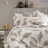 Completo copripiumino matrimoniale in raso con stampa all over su federe e sopra sacca copripiumino, lenzuolo sotto e retro-sacca in raso di cotone tinta unita.