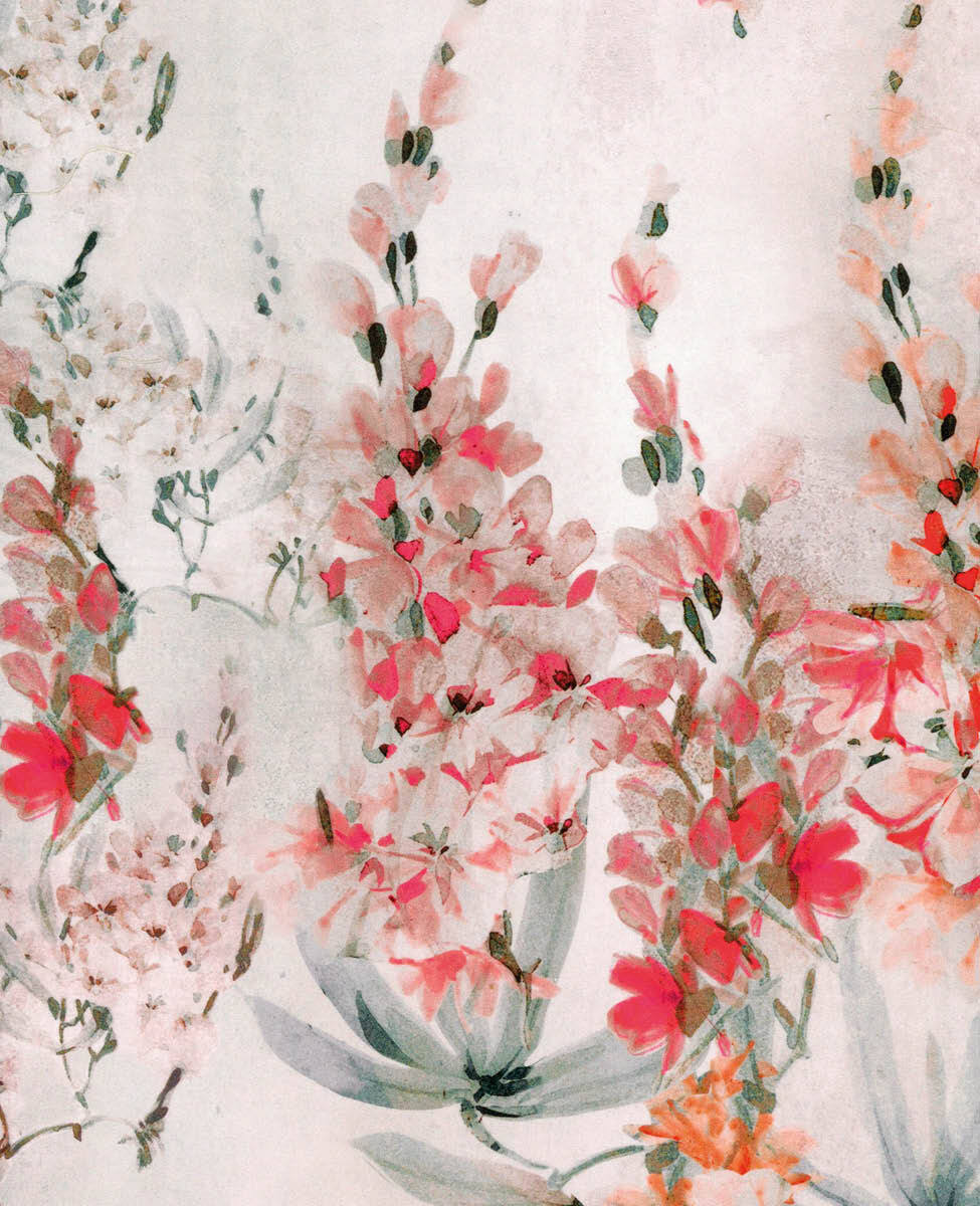 Completo copripiumino matrimoniale con stampa all over su federe e sopra sacca copripiumino, lenzuolo sotto e retro-sacca in raso di cotone tinta unita.