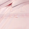 Completo copripiumino matrimoniale in raso di cotone tinta unita rifinito con tulle e logo Blumarine ricamato.