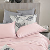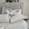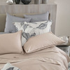 Completo copripiumino 5 pezzi in raso di cotone tinta unita rifinito con piping a contrasto e logo ricamato.