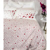 Parure copripiumino matrimoniale 3 pz in raso con stampa all-over, federe a 3 volani con stampa piazzata, sotto sacca e lenzuolo sotto in raso tinta unita, logo Blumarine stampato nella trama.