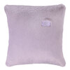 Cuscino arredo in ecopelliccia con logo Blumarine in cristalli su nastro gros grain, retro in velluto tinta unita.