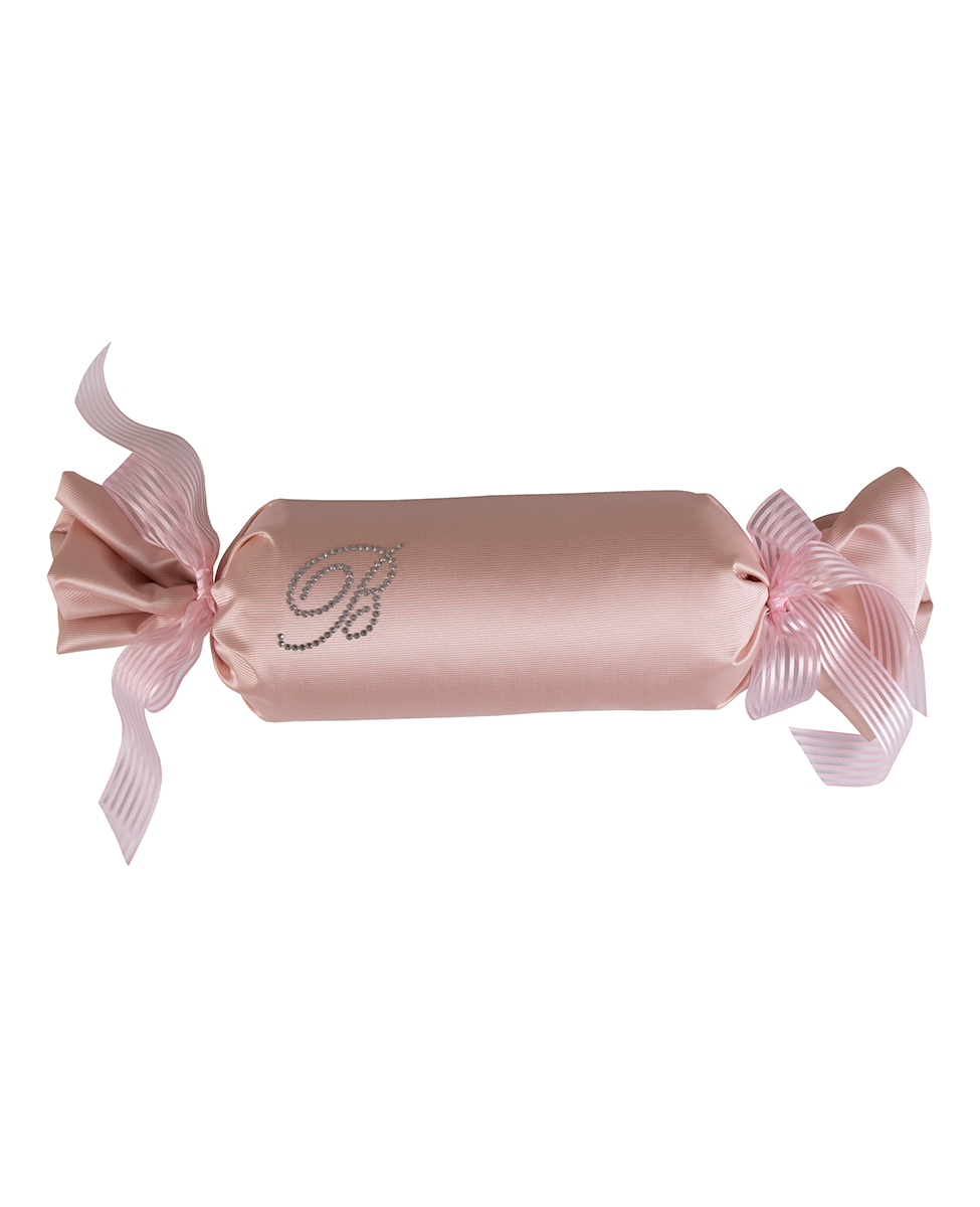 Caramella decorativa in tessuto Ottoman in tinta unita con monogramma Blumarine in cristalli Swarovski.