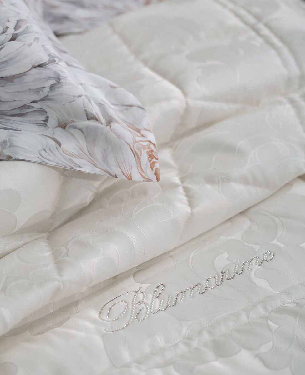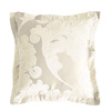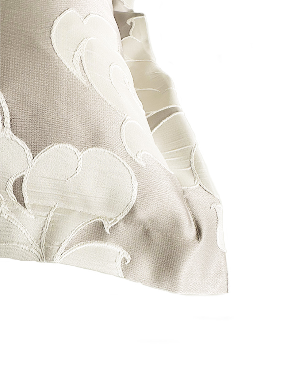 Cuscino arredo in jacquard con volano piatto e logo in cristalli.