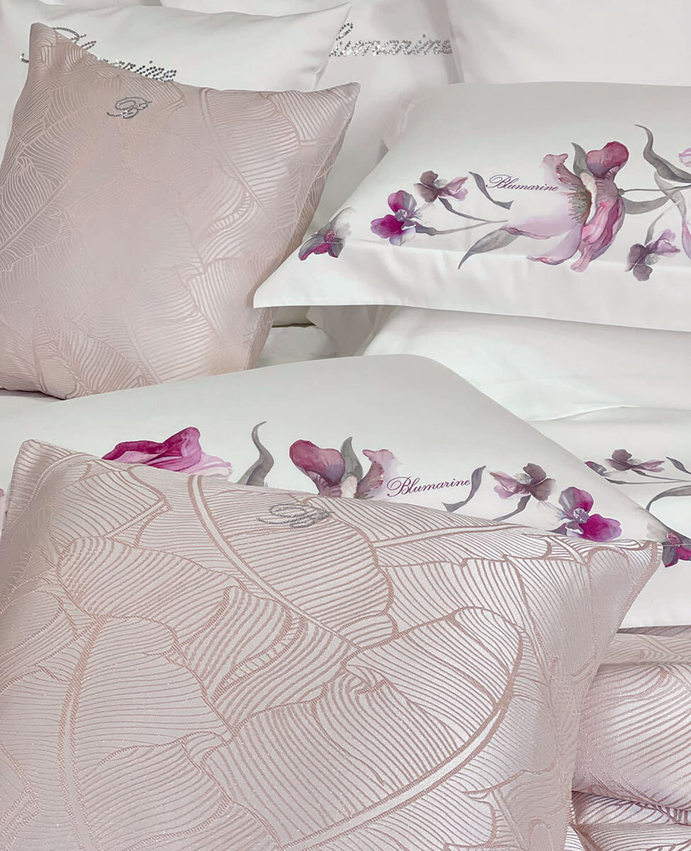 Cuscino arredo sfoderabile in jacquard con logo Blumarine in cristalli.