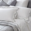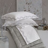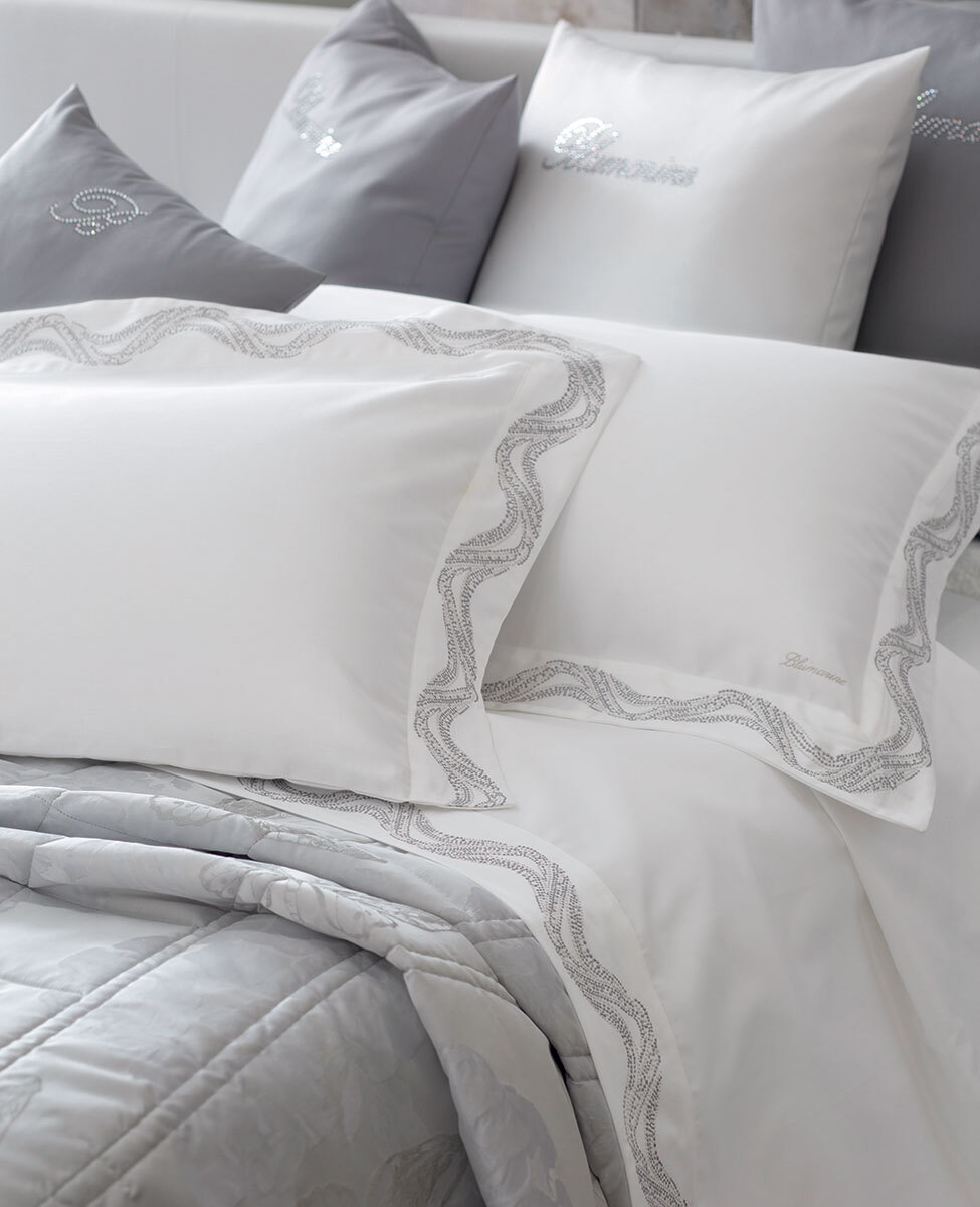 Completo lenzuola matrimoniale in raso di cotone ricamato con logo Blumarine ricamato su federe e lenzuolo.