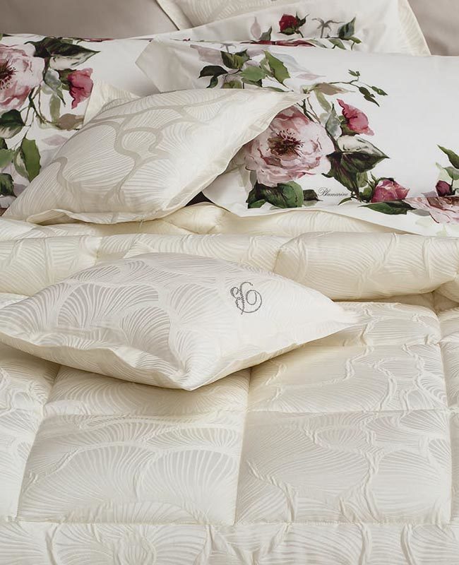 Trapunta matrimoniale in jacquard con monogramma Blumarine in cristalli Swarovski. Romantica, elegante, sensuale, questa è la visione Blumarine.