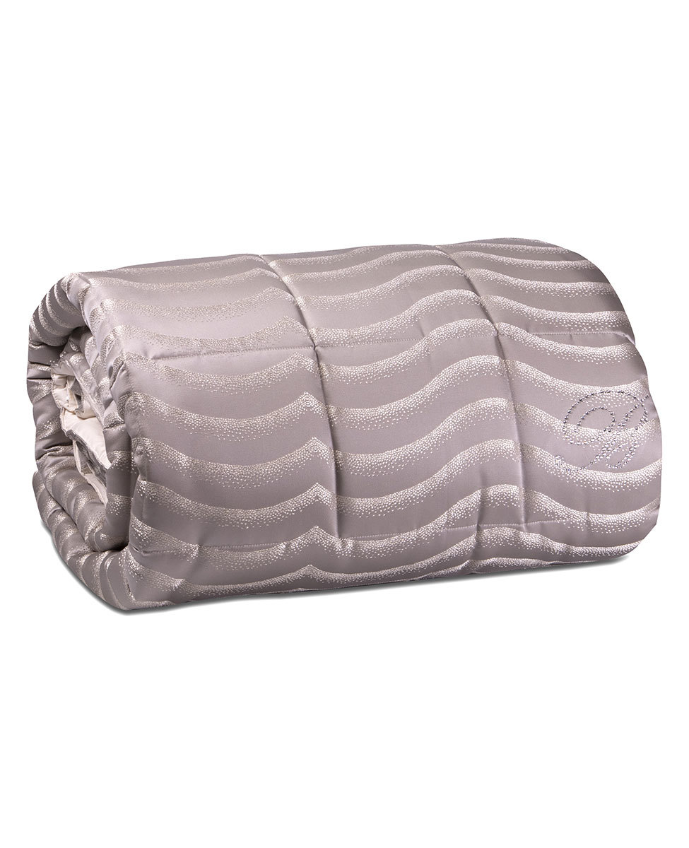 Trapunta matrimoniale con sensuale motivo jacquard a onde e logo Blumarine in cristalli Swarovski.