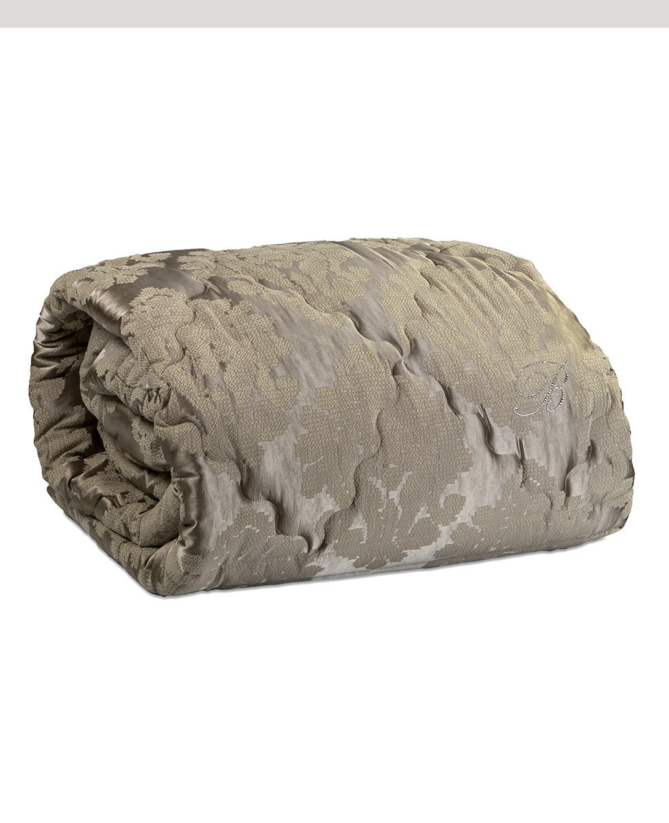 Trapunta matrimoniale con disegno jacquard e logo Blumarine in cristalli.