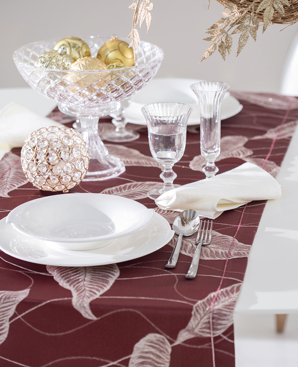 Runner in tessuto jacquard rifinito con orlo a-jour alto 4 cm e angoli a cappuccio e logo Blumarine nella trama.