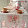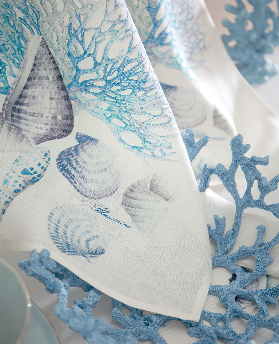 Runner in lino con stampa piazzata e logo Blumarine nella trama.