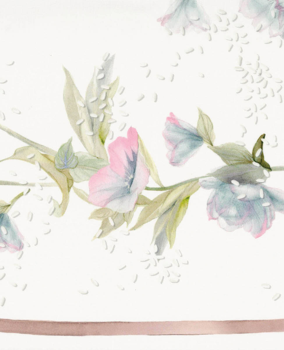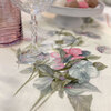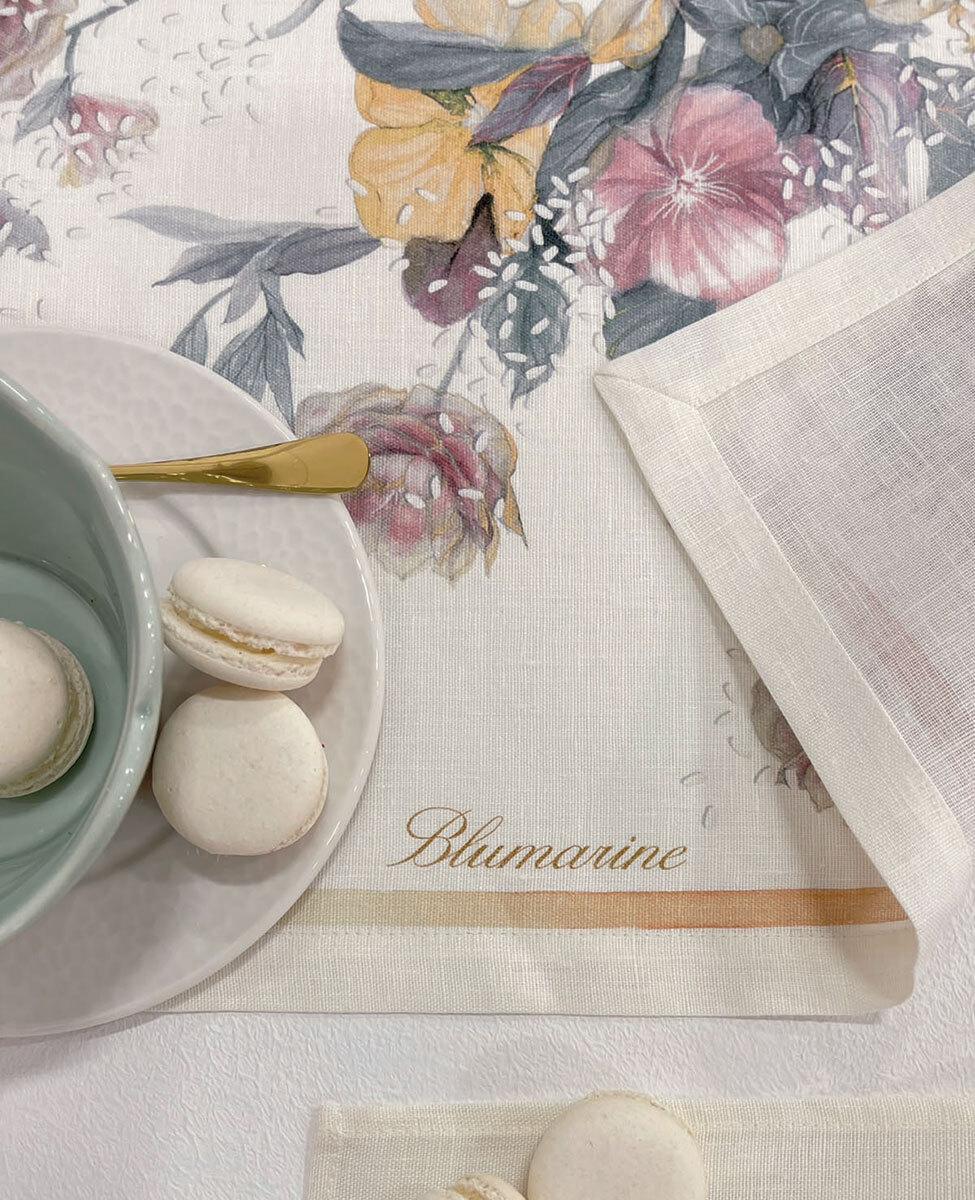 Runner in lino con stampa piazzata e logo Blumarine nella trama.