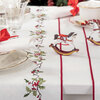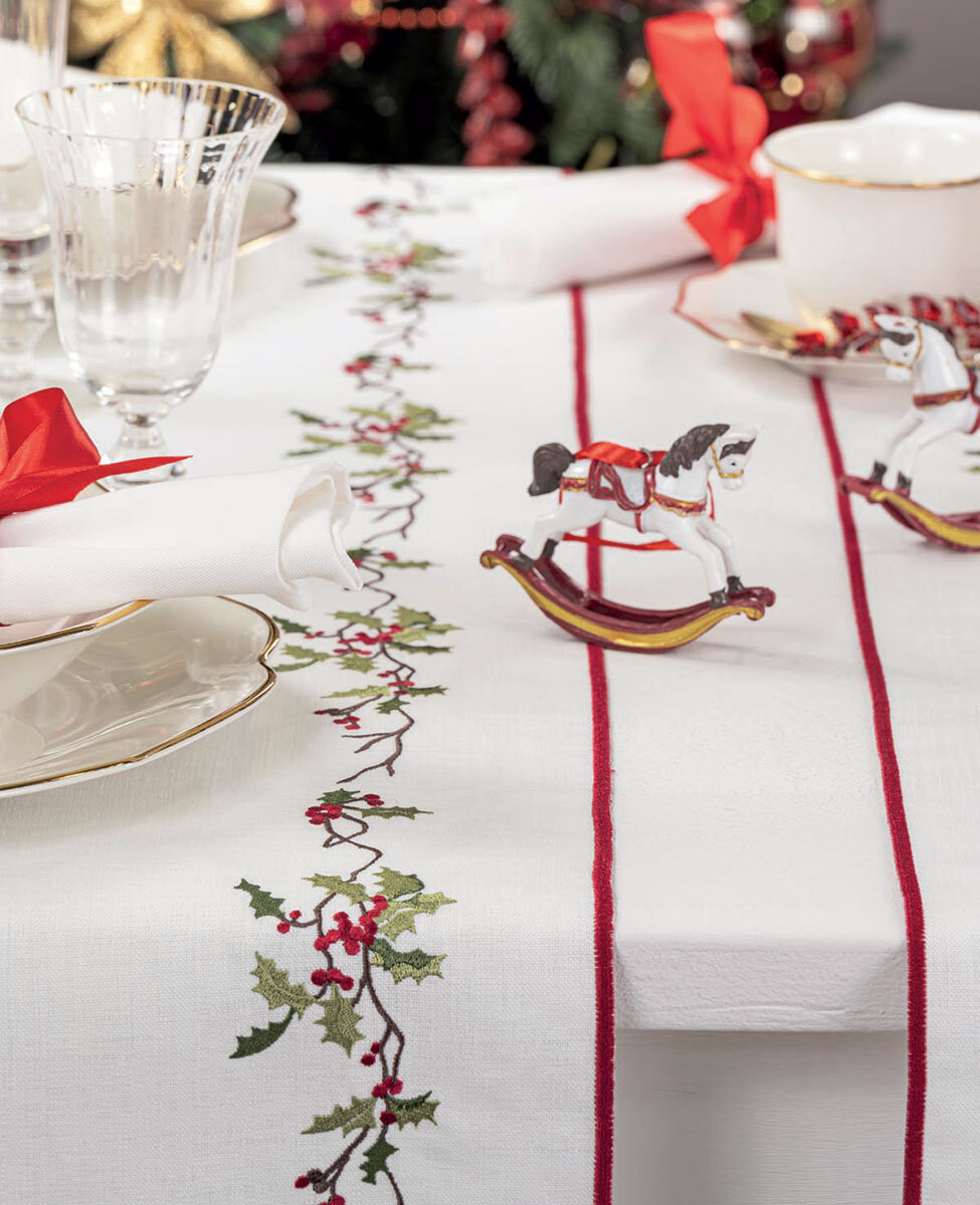 Runner in lino ricamato e rifinito con taglio laser e logo Blumarine ricamato.