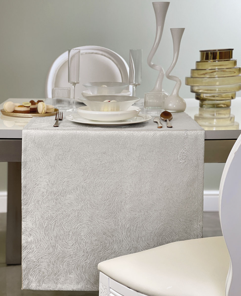 Runner in tessuto jacquard rifinito con angoli a cappuccio e logo Blumarine in cristalli.