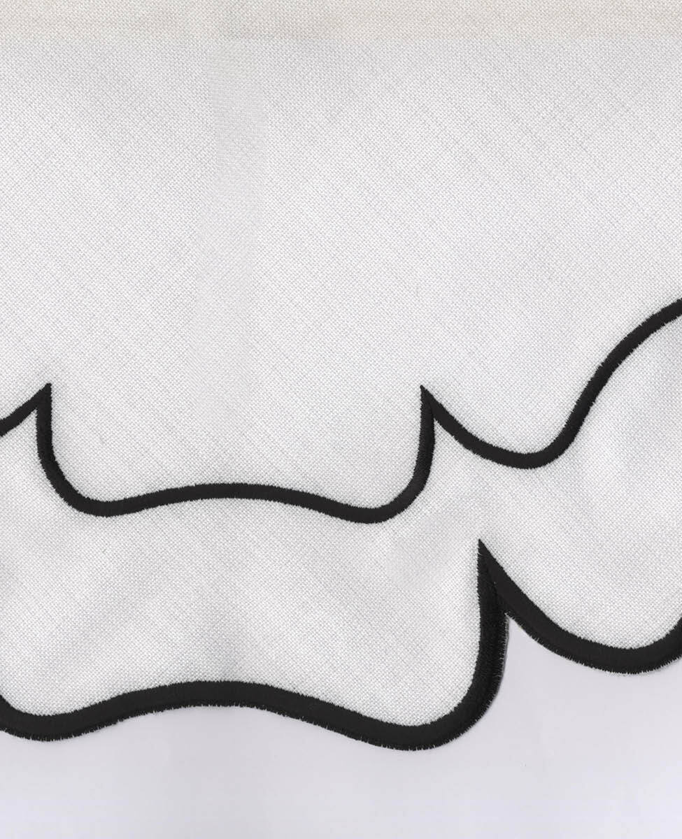 Set tovaglietta americana + tovagliolo ricamata a fiore con taglio laser e rifinita con cordonetto e logo Blumarine ricamato.