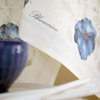 Tovaglia in lino con stampa piazzata per 10/12 posti e logo Blumarine, elegantemente confezionata in scatola, perfetta come idea regalo.