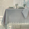 Tovaglia per 12 posti in tinta unita con pizzo in applicazione su 4 lati e logo Blumarine ricamato.