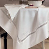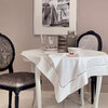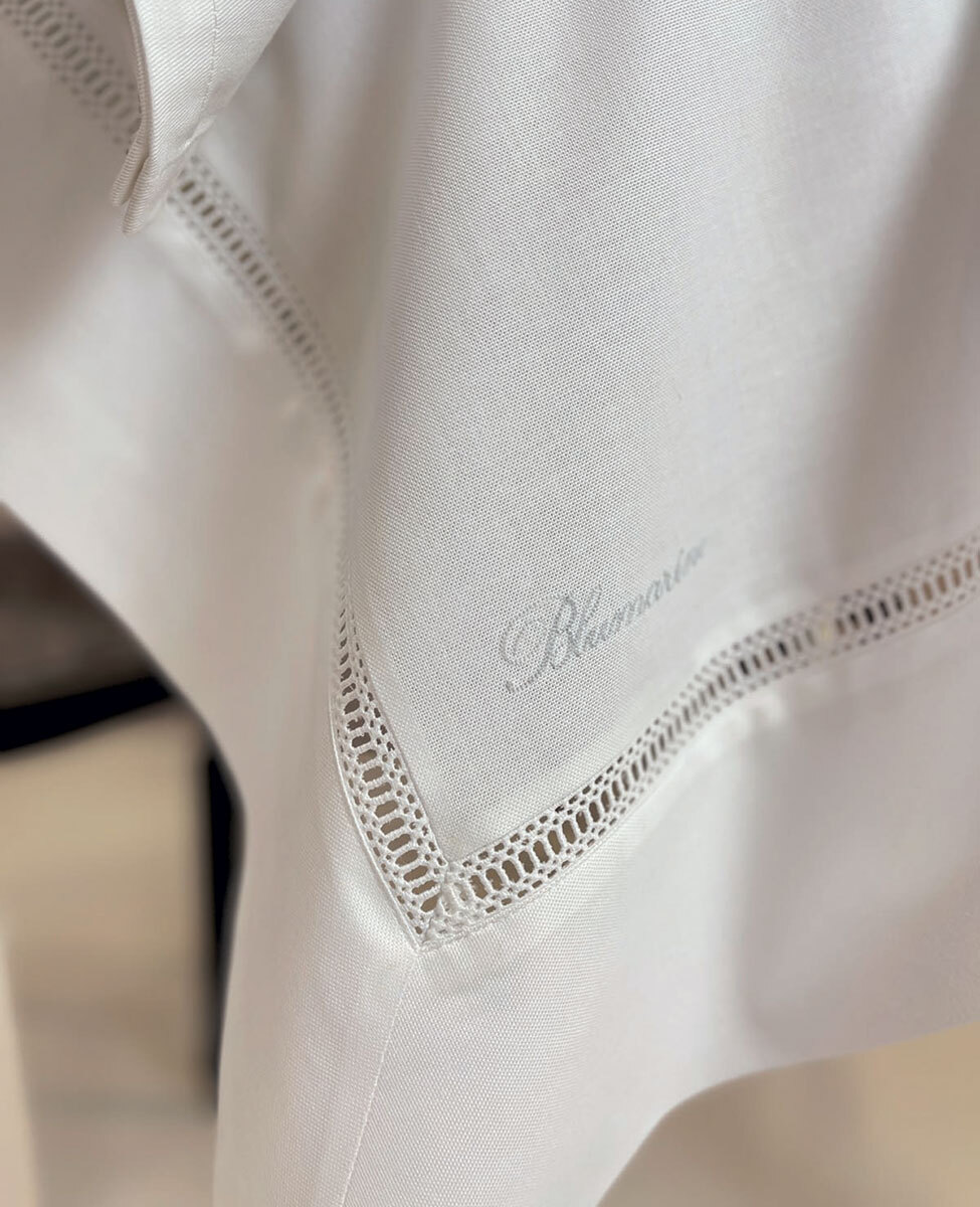 Elegante tovaglia tinta unita in misto cotone rifinita con gigliuccio e logo Blumarine ricamato.