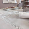 Copritavolo tinta unita in misto cotone rifinita con gigliuccio e logo Blumarine ricamato.