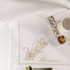 Elegante tovaglia tinta unita rifinita con cordonetto e motivo floreale e logo Blumarine ricamato.