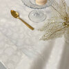 Elegante tovaglia tinta unita in fiandra jacquard con motivo definito da semicerchi ad effetto martellato, logo Blumarine ricamato, orlo con angoli a cappuccio, ideale per 10/12 posti.