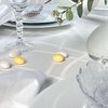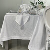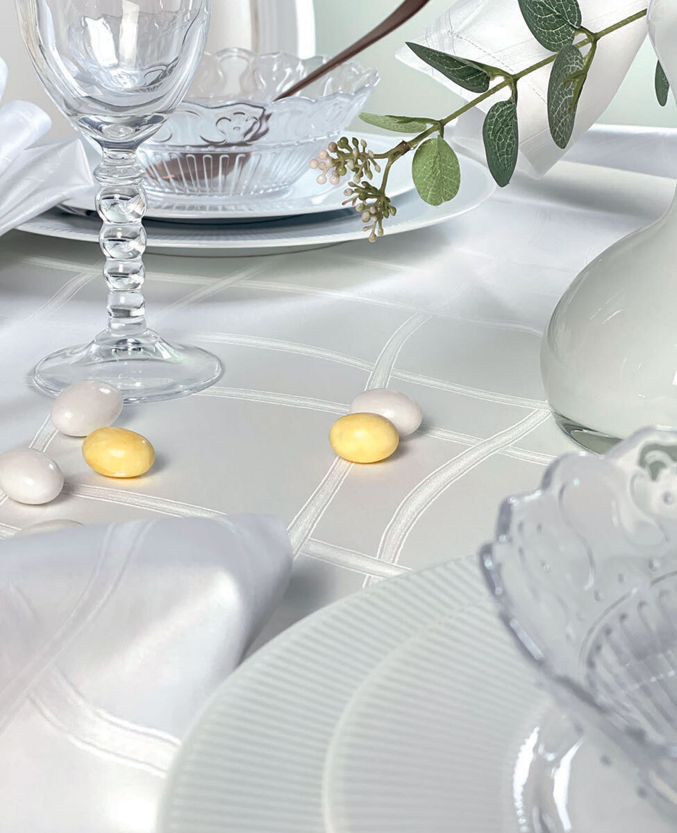 Elegante tovaglia da 10/12 posti in fiandra jacquard tinta unita con logo Blumarine ricamato e orlo con angoli a cappuccio.