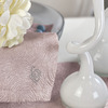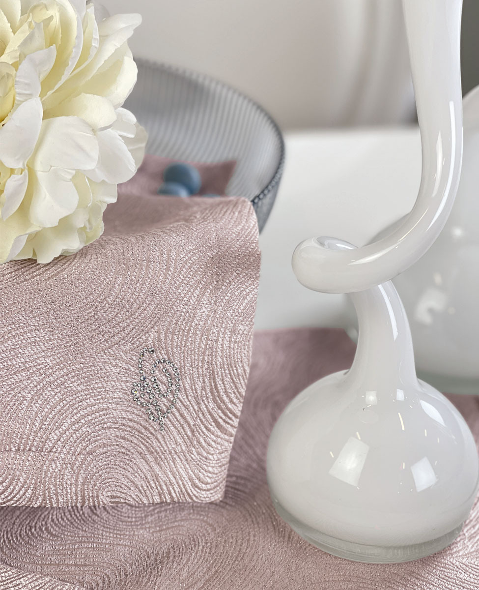 Set di tre centrini in tessuto jacquard rifinito con angoli a cappuccio e logo Blumarine in cristalli.