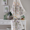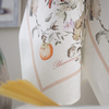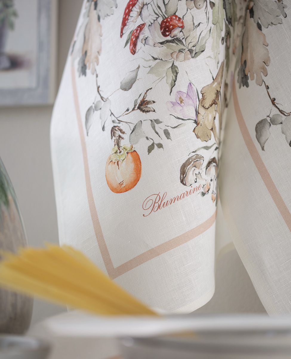 Canovaccio in lino con stampa piazzata e logo Blumarine presente nella trama.