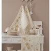 Canovaccio in lino con stampa piazzata e logo Blumarine stampato nella trama.