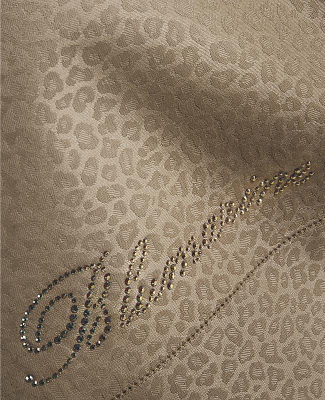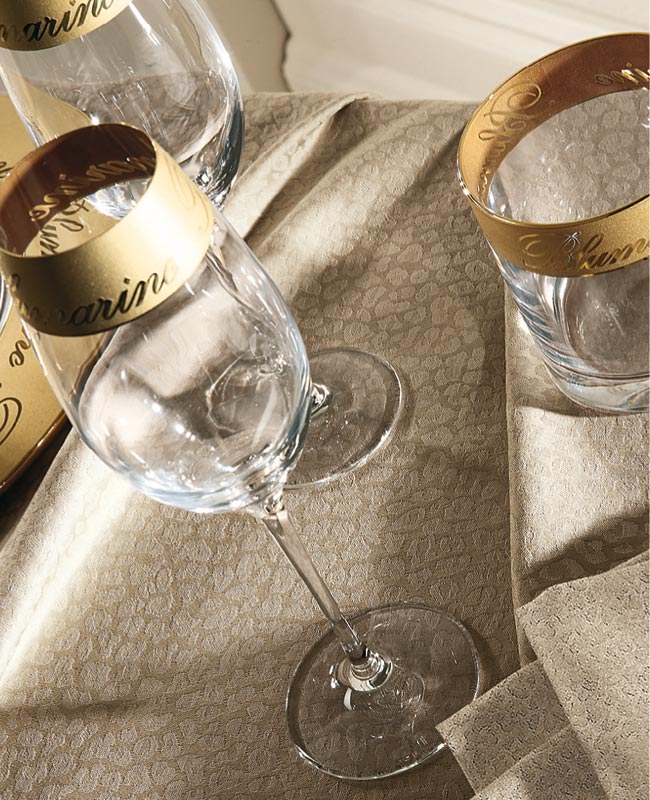 Tovaglia in jacquard rifinita à jour con Strass.