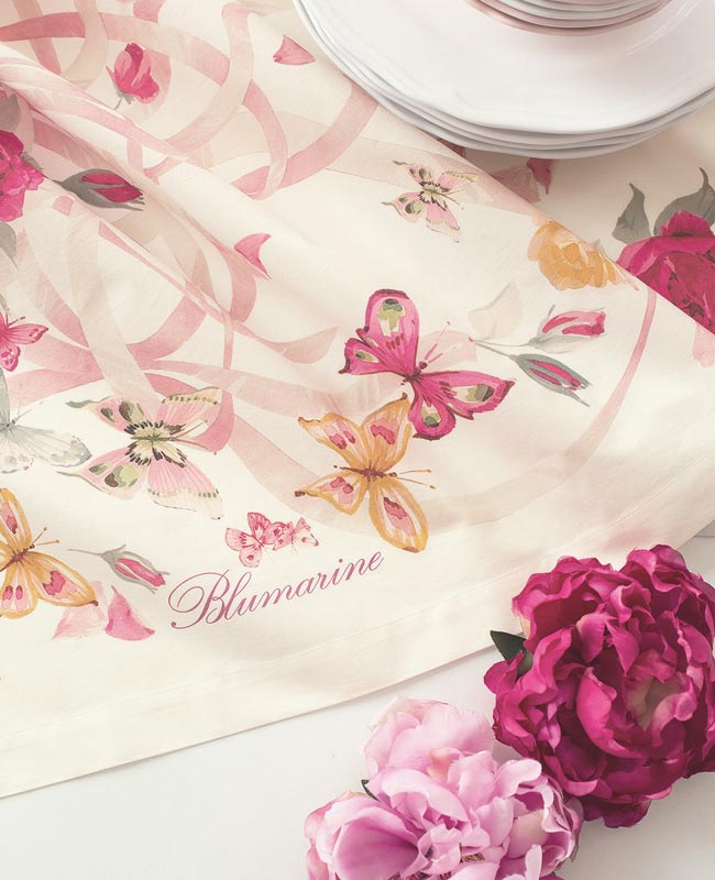 Tovaglia in lino con stampa piazzata per 6/8 posti.