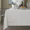 Tovaglia 18 posti all over in fiandra rifinita con impuntura Filo Giotto e logo Blumarine in cristalli e con 18 tovaglioli 50x50 cm, elegantemente confezionata in scatola, perfetta come idea regalo.